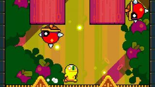 In Leap Day, your little yellow character is tasked with getting to the top of a tall tower. You can jump, double jump and slide down walls, but that's it. You must therefore carefully leap past cartoon foes and gigantic spikes, grabbing fruit along the way.